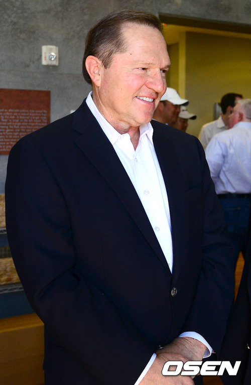 스캇 보라스가 신시내티 스프링 캠프를 찾아 허구연 해설위원과 이야기를 나누고 있다