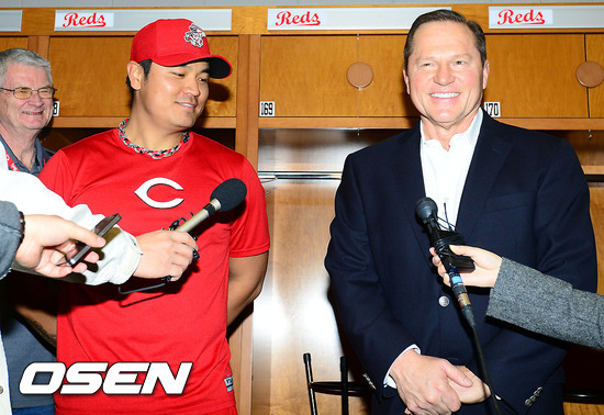 신시내티 추신수와 스캇 보라스가 인터뷰를 하고 있다