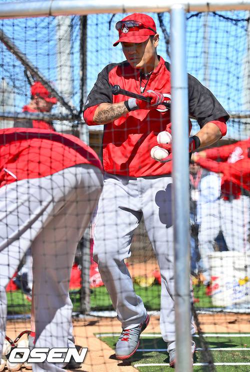 [OSEN=굿이어(미국 애리조나), 곽영래 기자] 추추트레인 추신수(31, 신시내티 레즈)가 15일(현지시간) 미국 애리조나 굿이어 볼파크에서 스프링캠프 훈련을 가졌다.