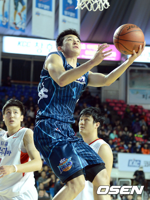 16일 오후 전주실내체육관에서 열린 'KB 국민카드 2012-2013 프로농구' 전주 KCC와 고양 오리온스의 경기, 1쿼터 KCC 강병현이 레이업슛을 시도하고 있다.