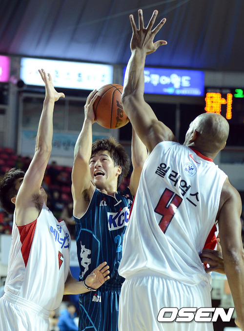 16일 오후 전주실내체육관에서 열린 'KB 국민카드 2012-2013 프로농구' 전주 KCC와 고양 오리온스의 경기, 1쿼터 KCC 박경상이 골밑슛을 시도하고 있다.