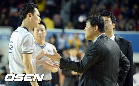 16일 오후 전주실내체육관에서 열린 'KB 국민카드 2012-2013 프로농구' 전주 KCC와 고양 오리온스의 경기 2쿼터, 오리온스 추일승 감독이 심판 판정에 항의하고 있다.