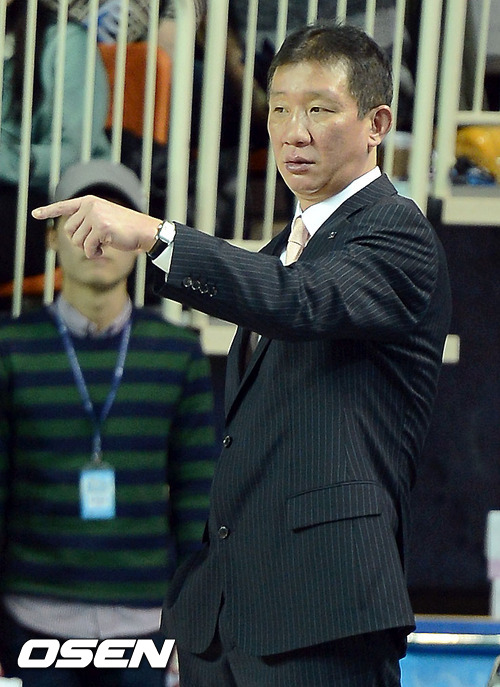 16일 오후 전주실내체육관에서 열린 'KB 국민카드 2012-2013 프로농구' 전주 KCC와 고양 오리온스의 경기 2쿼터, KCC 허재 감독이 선수들에게 작전을 지시하고 있다.