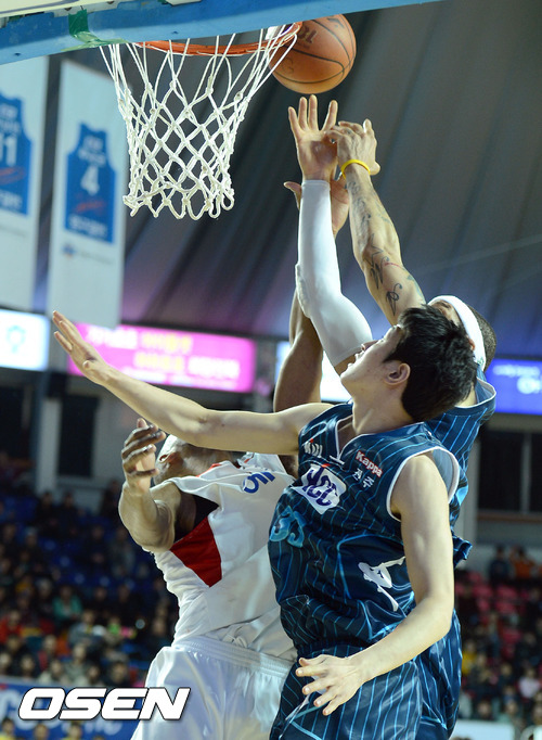 16일 오후 전주실내체육관에서 열린 'KB 국민카드 2012-2013 프로농구' 전주 KCC와 고양 오리온스의 경기 2쿼터, KCC 브라운과 오리온스 윌리엄스가 리바운드 다툼을 하고 있다.