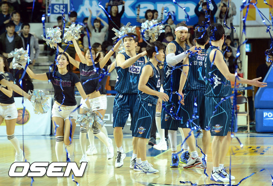 경기종료, 우승한 KCC 선수들과 KCC 치어리더들이 기뻐하고 있다. /ouxou@osen.co.kr