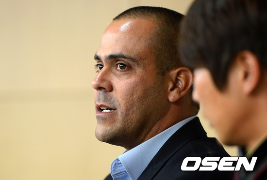 출정식 후 기자회견에서 전북 파비오 감독대행이 취재진의 질문에 답을 하고 있다.