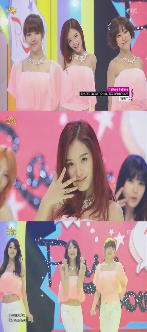 레인보우는 16일 오후 3시 55분 방송된 MBC '쇼! 음악중심'에서 출연해 곡 '텔미 텔미(Tell me Tell me)'를 열창했다.