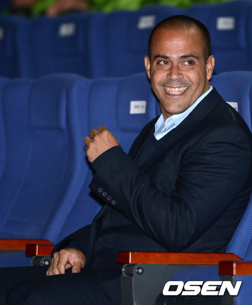전북 파비오 감독대행이 환하게 미소 짓고 있다.