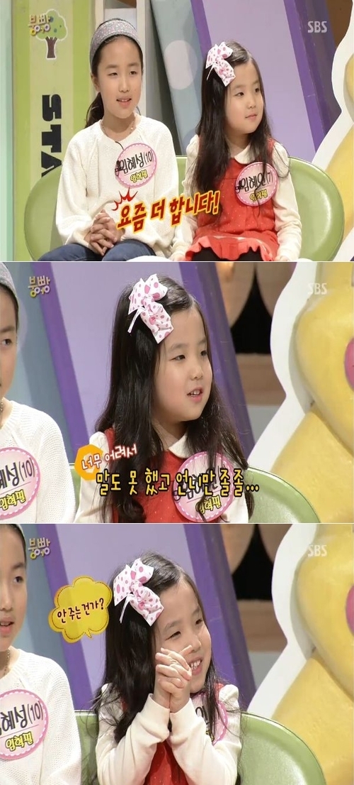 임혜성 양은 16일 오후 방송된 SBS 예능프로그램 '스타주니어쇼-붕어빵'(이하 '붕어빵')에 동생 혜인 양과 함께 4년 만에 출연했다.