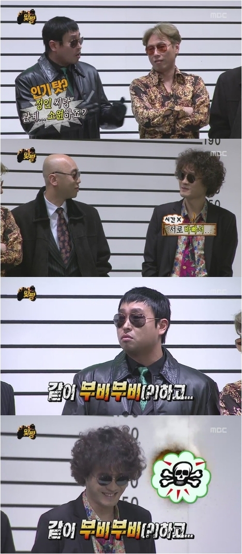 한편 이날 ‘맞짱’은 2011년 5월 빅뱅이 출연했던 ‘갱스 오브 서울’ 대결 이후 내부 분쟁이 일어나 두 개의 파로 나뉜 ‘무도파’가 조직원을 충원해 세를 넓혀 결투를 벌인다는 설정으로 진행됐다. 유재석, 박명수, 정준하, 정형돈, 길, 노홍철, 하하와 게스트 권오중, 데프콘, 김제동, 김영철이 함께 했다.