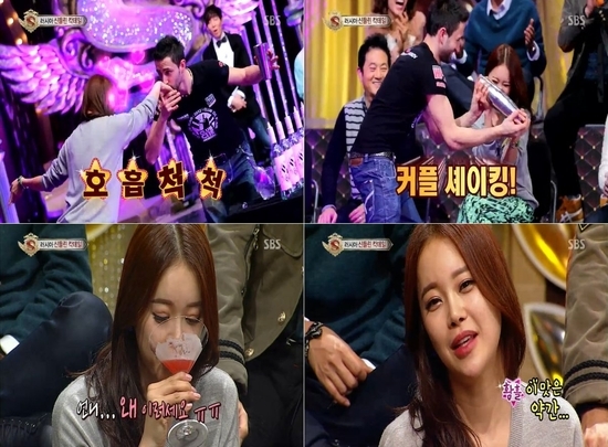 '스타킹'에 출연한 가수 백지영이 꽃미남 바텐더에게 자신만의 칵테일을 만들어 달라 부탁하며 그와 함께 섹시한 콜라보레이션 무대를 만들었다.