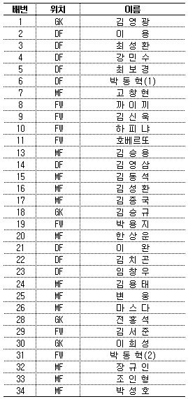 지난 시즌 맹활약 펼쳤던 하피냐는 울산을 떠난 마라냥의 10번을 선택했으며, 하피냐의 19번은 이번 제주도 전지훈련에서 3경기 연속 득점을 기록하는 등 큰 주목을 받은 특급신인 박용지가 이어받았다.