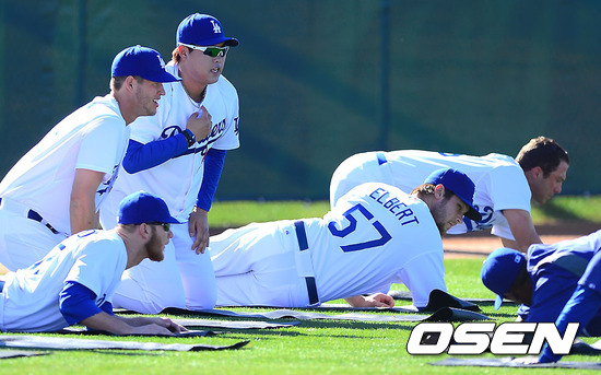 [OSEN=글렌데일(미국 애리조나), 곽영래 기자] LA 다저스의 괴물 투수 류현진이 16일(현지시간) 미국 애리조나주 글렌데일의 캐멀백 랜치 스타디움에서 열린 다저스 스프링캠프에서 팀 훈련을 가졌다.