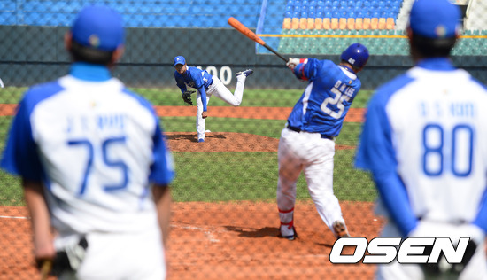 류중일, 김동수 코치가 시뮬레이션 훈련을 지켜보고 있다.