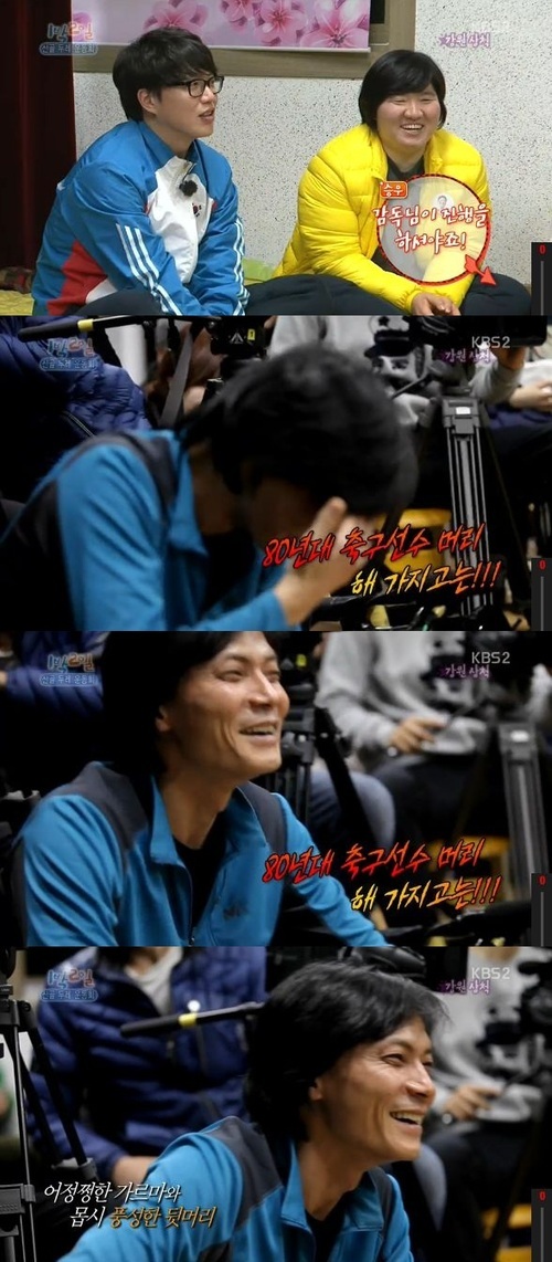 이에 김승우는 "그럼 우리가 PD님을 쳐다보지 누굴 봐야 하느냐"며 "80년대 축구 선수 머리 해놓고는.."이라고 말하며 면박을 줬다. 다른 멤버들 역시 "감독님이 진행을 해야지 그럼 어쩌란 말이냐"며 보태고 나서 최 PD를 무안하게 만들었다.