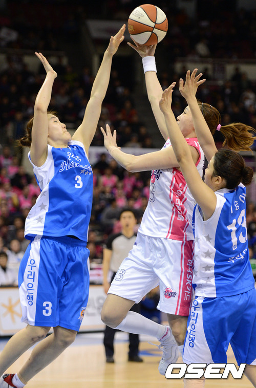 우리은행 한새는 지난 15일 7라운드 경기서 구리 KDB생명을 77-50으로 꺾었다. 우리은행은 23승 9패로 2위 신한은행에 2경기 차로 달아나면서 정규시즌 우승 매직넘버를 1로 줄였다.
