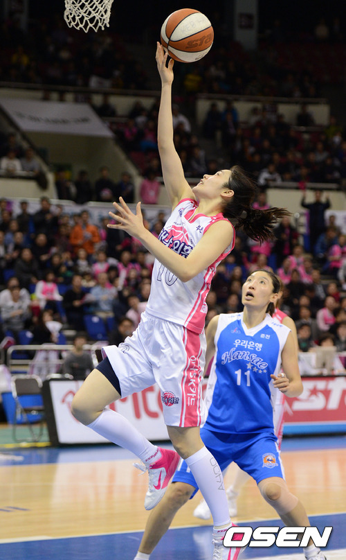 우리은행 한새는 지난 15일 7라운드 경기서 구리 KDB생명을 77-50으로 꺾었다. 우리은행은 23승 9패로 2위 신한은행에 2경기 차로 달아나면서 정규시즌 우승 매직넘버를 1로 줄였다.