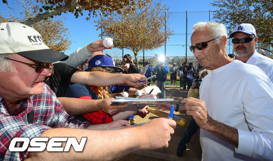 샌디 쿠팩스 인스트럭터가 야구 팬들에게 사인을 하고 있다