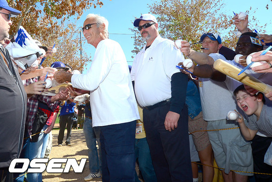 샌디 쿠팩스 인스트럭터가 야구 팬들에게 사인을 하고 있다