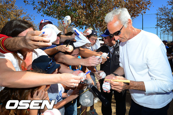 샌디 쿠팩스 인스트럭터가 야구 팬들에게 사인을 하고 있다