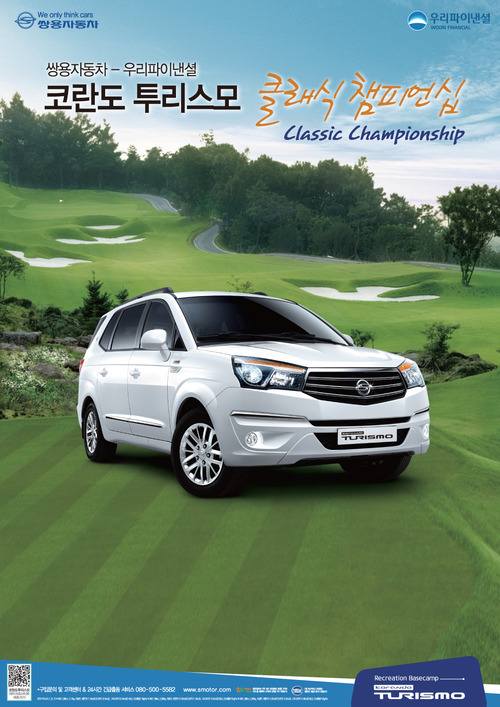 쌍용차는 18일부터 3월 17일까지 한 달에 걸쳐 제휴 할부사인 우리파이낸셜과 공동으로 ‘코란도 투리스모 클래식 챔피언십’을 전국 골프존 매장에서 개최한다고 밝혔다. 예선을 거쳐 1위에서 18위까지 상위 기록을 달성한 참가자들은 3월 23일 서울 송파 가든파이브에서 열리는 본선에 진출해 최종 승자를 가리게 되며, 참가 인원은 전국적으로 2만여 명에 이를 것으로 예상된다.