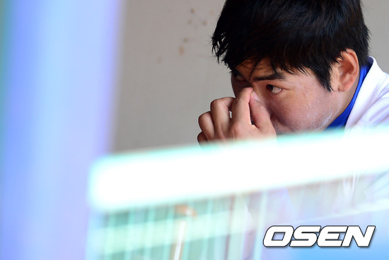 강정호가 더그아웃에서 휴식을 취하고 있다.