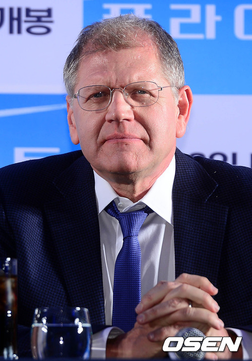 기자들의 질문 듣는 로버트 저메키스 감독