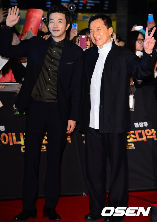 18일 오후 서울 중구 소공동 롯데 에비뉴엘에서 진행된 영화 '차이니즈 조디악' 레드카펫 및 VIP 시사회 행사에서 권상우와 성룡이 팬들 앞에서 포토타임을 갖고 있다.