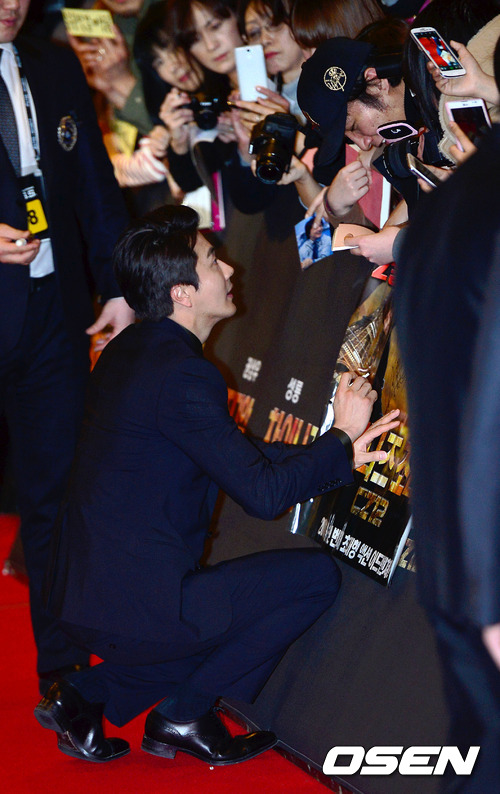 18일 오후 서울 중구 소공동 롯데시네마 에비뉴엘에서 진행된 영화 '차이니즈 조디악' 레드카펫&VIP 시사에서 권상우가 팬들에게 사인을 해주고 있다.
