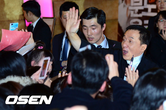 18일 오후 서울 중구 소공동 롯데시네마 에비뉴엘에서 진행된 영화 '차이니즈 조디악' 레드카펫&VIP 시사에서 성룡이 팬들에게 인사를 하고 있다.