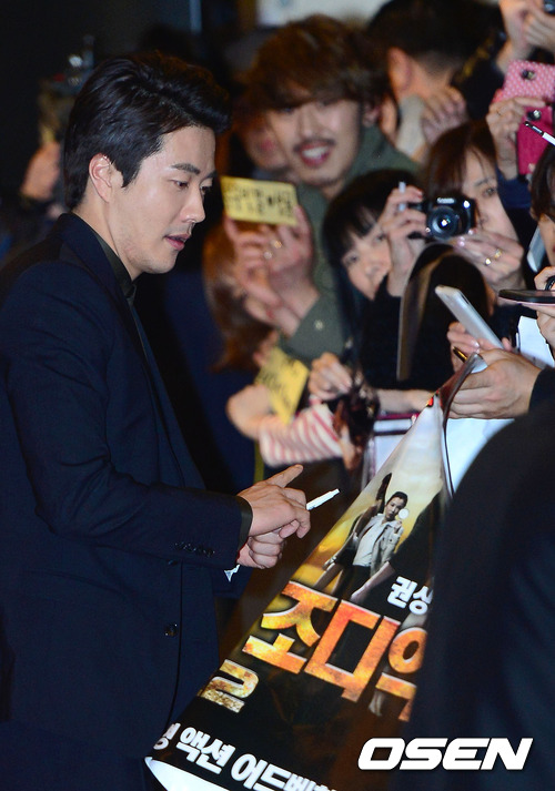 18일 오후 서울 중구 소공동 롯데시네마 에비뉴엘에서 진행된 영화 '차이니즈 조디악' 레드카펫&VIP 시사에서 권상우가 팬들에게 사인을 해주고 있다.