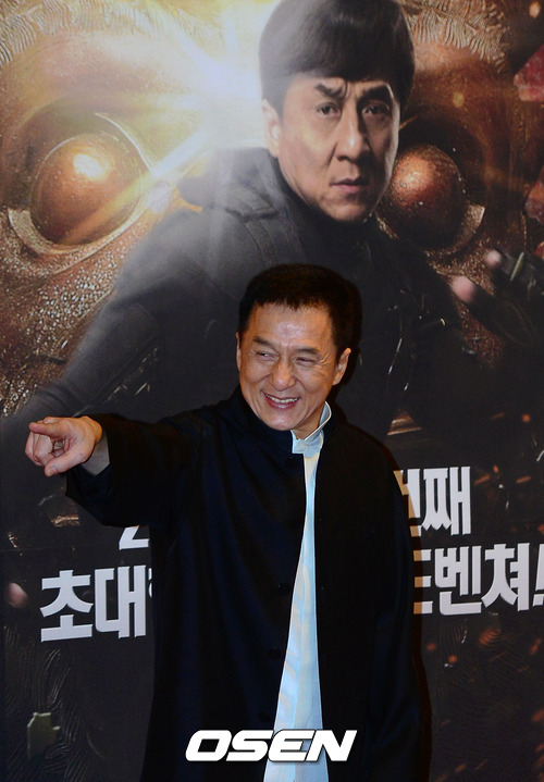 18일 오후 서울 중구 소공동 롯데시네마 에비뉴엘에서 진행된 영화 '차이니즈 조디악' 레드카펫&VIP 시사에서 성룡이 포토타임을 갖고 있다.