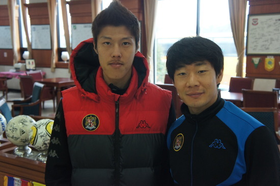 새 출발이라고 표현하기엔 쑥스럽다. 하지만 새로운 팀에서 새로운 동료들과 맞이하는 새 시즌은 남다르게 느껴질 수밖에 없다. 올 겨울 제주에서 대전으로 이적한 박진옥(31)과 윤원일(27) 이야기다. 두 선수는 시즌 개막을 앞둔 대전 시티즌 선수단과 함께 현재 남해스포츠파크에서 구슬땀을 흘리며 전지훈련 중이다. 새 출발과 도전, 생존이라는 가장 큰 목표 앞에서 완전한 '대전맨'이 된 두 사람의 이야기를 들어봤다.