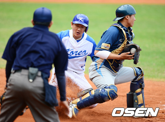 8회말 1사 만루에서 대표팀 이진영의 3루 땅볼에 3루주자 손시헌이 홈에서 NC 김태군에 태그아웃당하고 있다. /jpnews@osen.co.kr