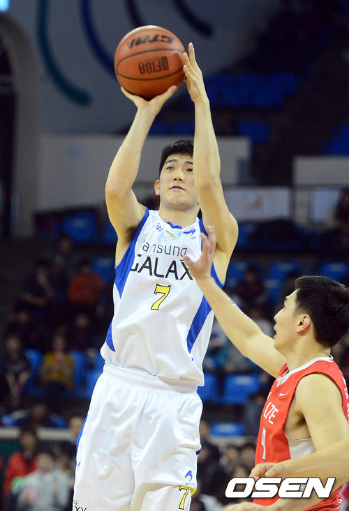 19일 오후 서울 잠실학생체육관에서 열린 'KB 국민카드 2012-2013 프로농구' 서울 SK와 서울 삼성의 경기 2쿼터 박병우가 외곽슛을 시도하고 있다.
