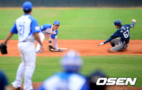 9회말 2사 1루에서 NC 박으뜸이 2루 도루를 시도하였지만 대표팀 손시헌에 태그아웃당하고 있다./jpnews@osen.co.kr