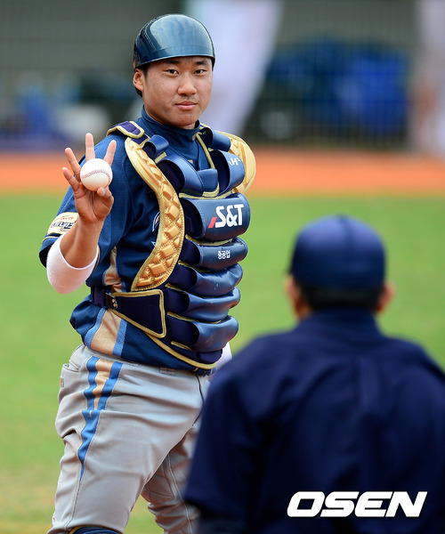 8회말 1사 만루에서 NC 김태군이 대표팀 이진영의 내야땅볼에 손시헌을 홈에서 태그아웃하고 심판에 볼 교환을 요구하고 있다./jpnews@osen.co.kr