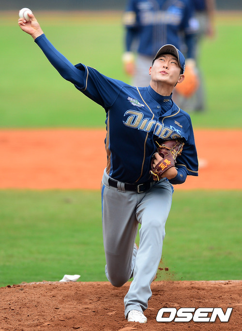 8회말 NC 최금강이 마운드에 올라 연습 투구를 하고 있다./jpnews@osen.co.kr
