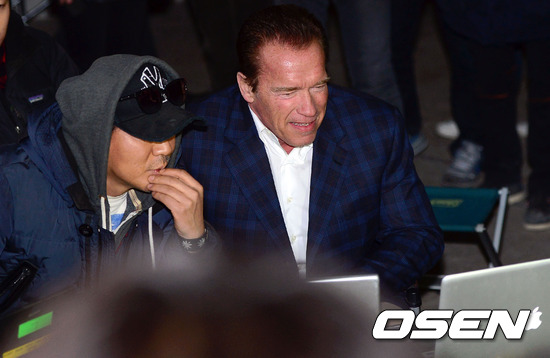 19일 오후 영화 '라스트 스탠드' 홍보차 방한하는 아놀드 슈왈제네거가 김지운 감독이 현재 촬영중인 단편 영화 'Hide & Seek' 촬영 현장을 방문했다.