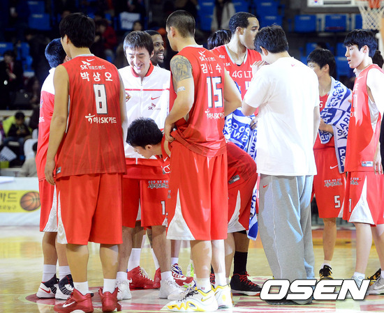 19일 오후 서울 잠실학생체육관에서 열린 'KB 국민카드 2012-2013 프로농구' 서울 SK와 서울 삼성의 경기 종료 후 SK 선수들이 코트를 빠져나가고 있다.