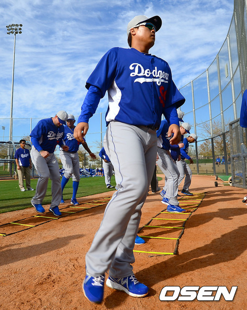 [OSEN=글렌데일(미국 애리조나), 곽영래 기자] LA 다저스의 괴물 투수 류현진이 119일(현지시간) 미국 애리조나주 글렌데일의 캐멀백 랜치 스타디움에서 열린 다저스 스프링캠프에서 팀 훈련을 가졌다.