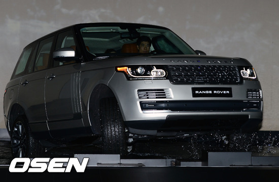 20일 오전 서울 광진구 광장동 악스홀에서 열린 '올 뉴 레인지로버(All-New Range Rover)' 신차 발표회에서 올 뉴 레인저로버가 물길을 뚫고 턱을 올라오고 있다.