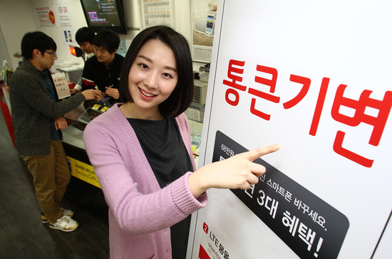 ‘통큰 기변’ 프로그램은 '갤럭시S3' '갤럭시노트2' '아이폰5' 3가지 모델에 적용되며 소비자가 선택하는 요금제에 따라 LTE 620 이상 요금제에 가입시 27만 원, LTE 520/550은 20만 원, LTE 340/420은 10만 원의 단말 할인 혜택을 24개월로 나누어 제공한다.