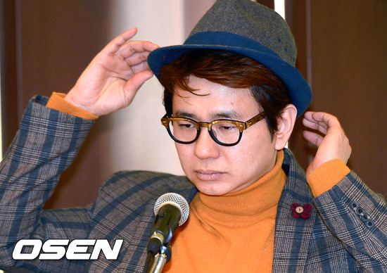 20일 오후 서울 프레스센터에서 진행된 '웃음만이 우리를 구원하리라' 출간 기념 기자간담회에서 박성호가 모자를 고쳐쓰고 있다.