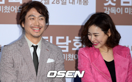 20일 오후 서울 CGV 왕십리에서 진행된 영화 '뒷담화:감독이 미쳤어요' 언론배급 시사회에서 오정세와 이하늬가 이재용 감독의 이야기에 미소를 짓고 있다.