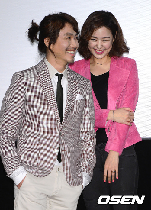 20일 오후 서울 CGV 왕십리에서 진행된 영화 '뒷담화:감독이 미쳤어요' 언론배급 시사회에서 오정세와 이하늬가 이야기를 나누고 있다.