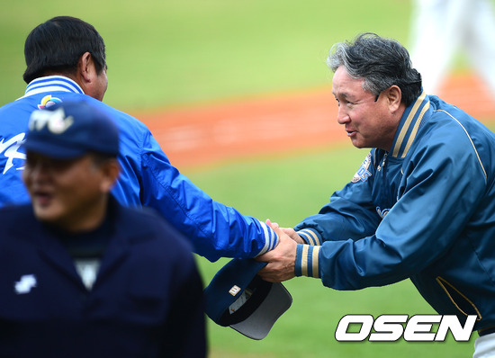 경기후 대표팀 류중일 감독과 NC 김경문 감독이 인사를 나누고 있다./jpnews@osen.co.kr