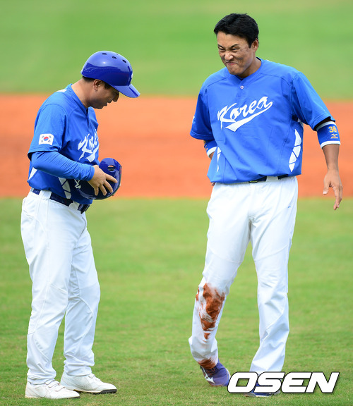 3회초 1사 1루에서 대표팀 이대호의 내야땅볼에 2루에서 포스아웃당한 이승엽이 슬라이딩에 엉덩이를 만지며 괴로워하고 있다./jpnews@osen.co.kr