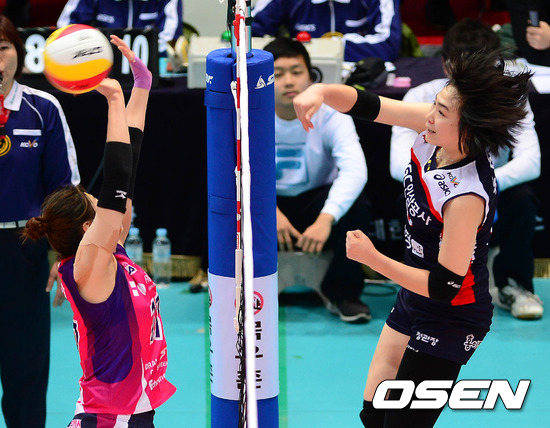 20일 오후 인천 도원체육관에서 열린 '2012-2013 NH농협 V-리그' 여자부 흥국생명과 KGC인삼공사의 경기 2세트 유미라가 공격을 시도하고 있다.