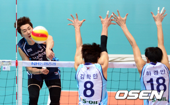 20일 오후 인천 도원체육관에서 열린 '2012-2013 NH농협 V-리그' 남자부 대한항공과 삼성화재의 경기 1세트 박철우가 공격을 시도하고 있다.